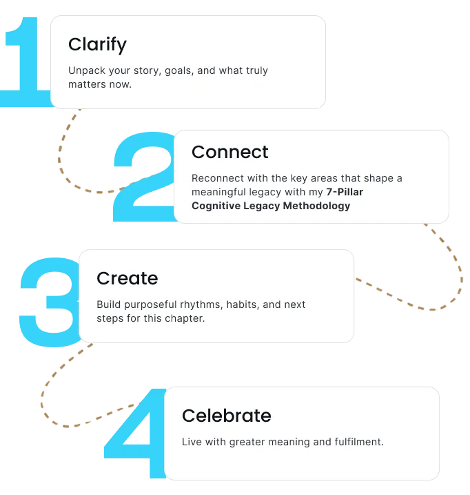 This program is specifically designed for financially free individuals, pre-retirees, and retirees who are seeking depth, purpose, and connection after their professional titles and routines are gone. While many clients might be in their 50s or 60s, I also works with "work-optional professionals" in their 30s or 40s who have achieved financial independence early and want to live a life of significance rather than just passing the time.